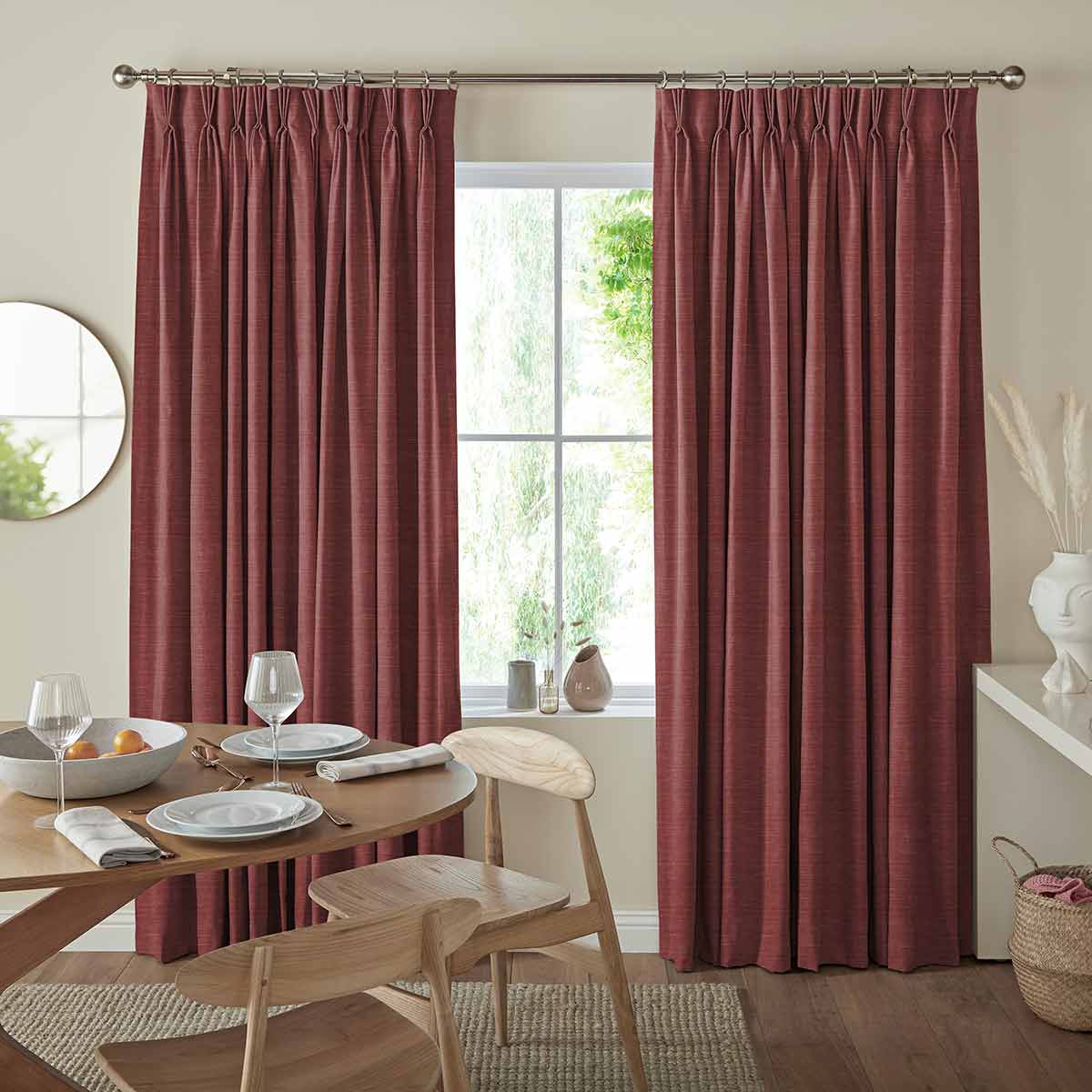 Double/Triple pinch pleat - Pinch pleat curtains can be fitted to a pole or a track. This header style has permenant sewn in pleats available in 4 inch or 6 inch sizes. A gliding hook at 100mm allows you to set the perfect position.