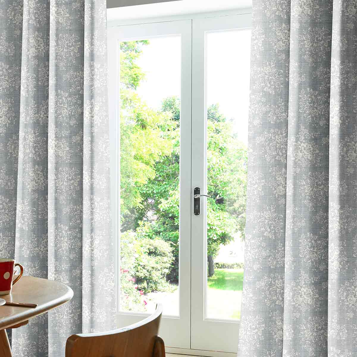 Featuring its subtle white pattern of illustrated roses over a light grey background, this design is ideal for creating a cooling sense of traditional style in any room.